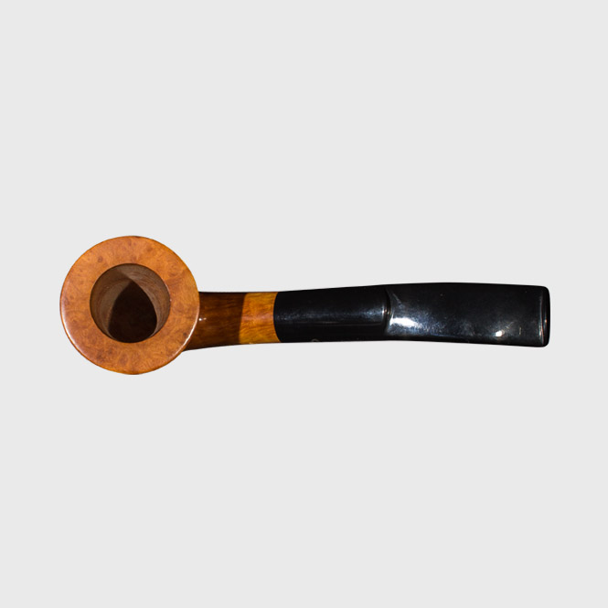 Der Kopf und der aufsteigende Holm wurden aus Bruyèreholz handwerklich hochwertig in Italien gefertigt und seidenmatt poliert. Auf dem schwarzen Acyrlmundstück befindet sich das Firmenlogo. Diese Pfeife ist ohne Filter.